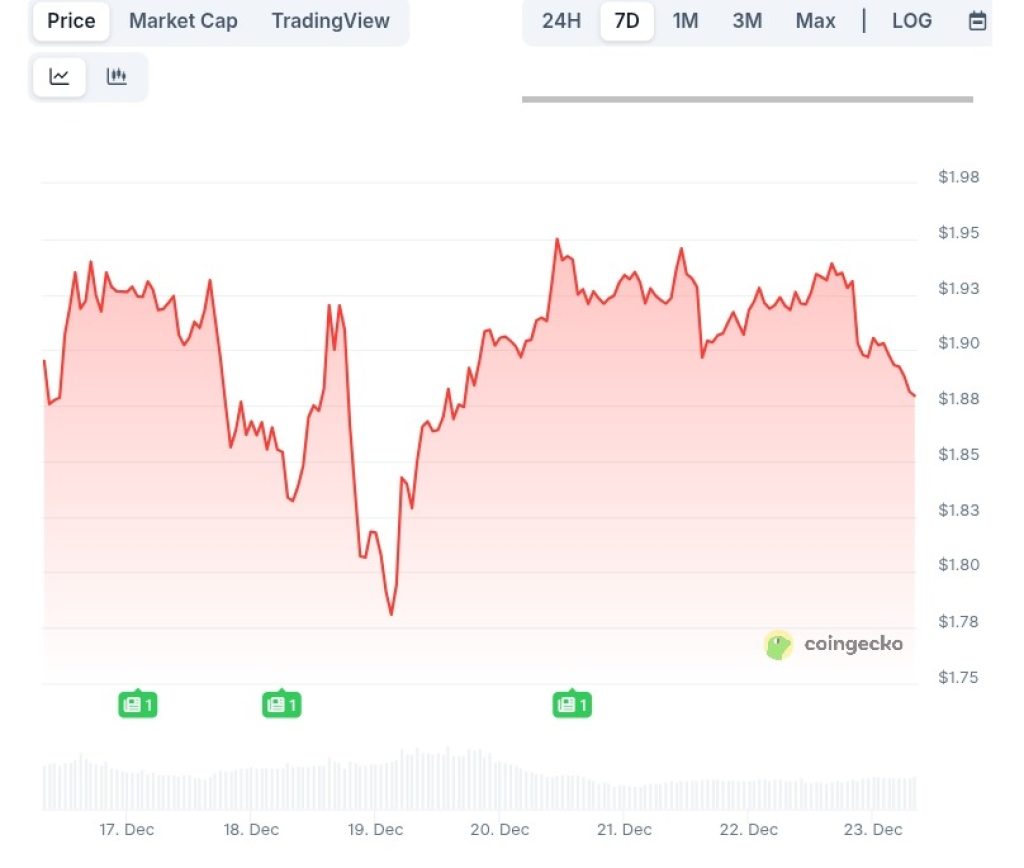 While there have been consistent XRP ETF inflows, market outflows have been high. As of December 23rd, the Ripple price was $1.88. Technical analysis shows that bears are currently in charge.