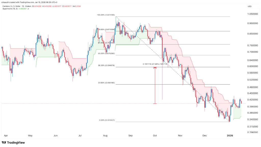Cardano was priced at around $0.40 on January 16 after pulling back slightly from a weekly high of $0.42. The developers are currently working on the Leios upgrade to deliver scalability through parallel processing. This move aims to attract more developers and high-tier stablecoins to the network