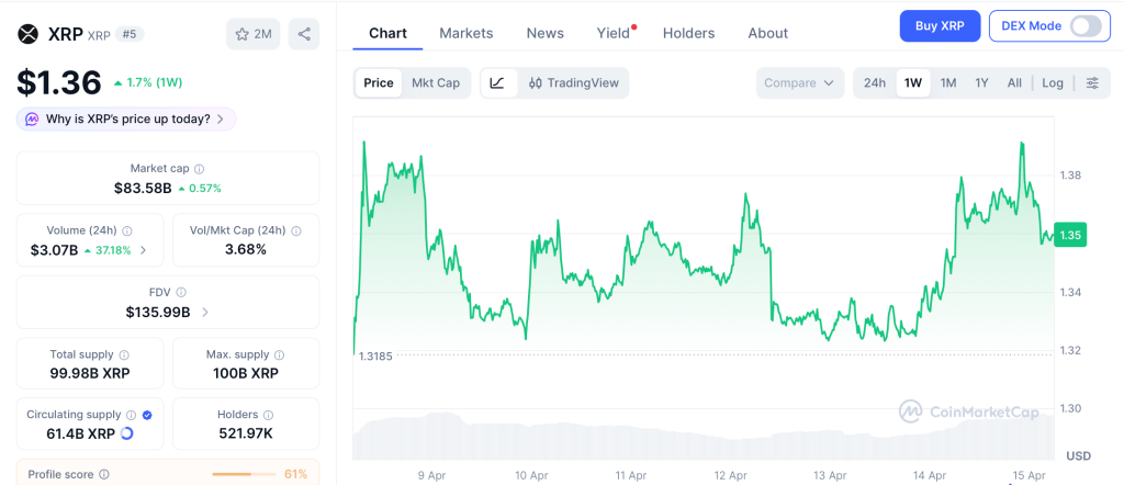 XRP trades at $1.36 with $1.40 resistance holding firm, and the CLARITY Act roundtable on April 16 is the key catalyst that could push the token toward $1.60.