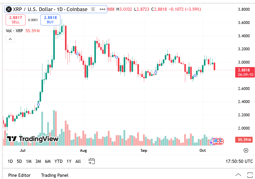 The current price of XRP is $2.88, a modest 0.54% decrease in the day, with a market capitalization of $178.18 billion. But there is also a 40.5% spike in trading volume to $6.51 billion, suggesting avid investor interest, and pointing to sustained interest in the cross-border use case of XRP.