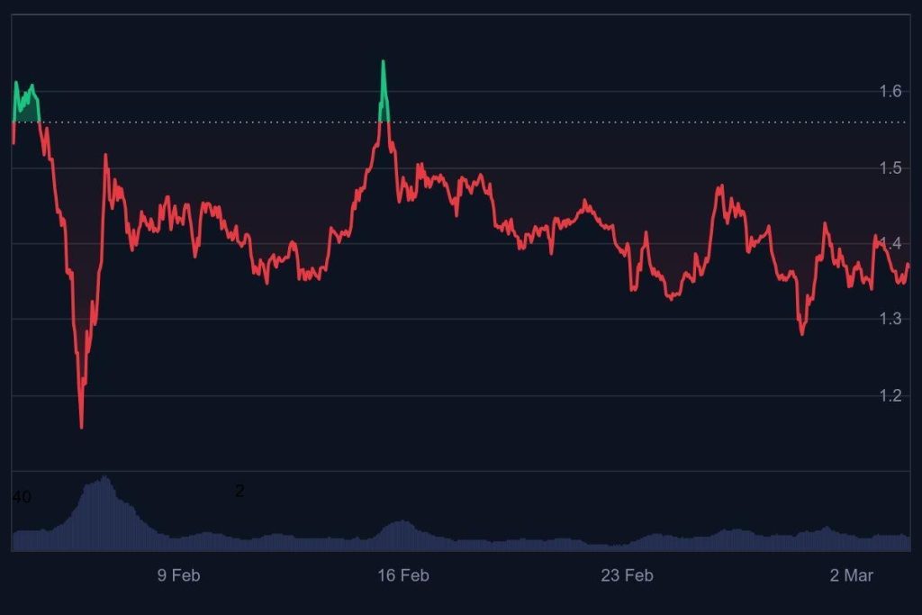 The XRP price prediction for the month has shown a decline, despite major developments from Ripple. The token opened at $1.59 on February 8 but has since fallen to $1.40 as of March 4, a 12% drop in the last month. This is despite Ripple enhancing the payment infrastructure for stablecoins.