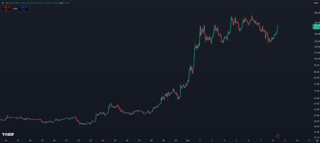 At writing, ZEC trades above $165, up around 16% today. The recovery has been fast, confident, and backed by solid buying pressure. Kaleo summed it up perfectly on X: “$ZEC strength is insane.” You can see it clearly on the chart, a clean V-shaped recovery after a dip toward the $120 zone.
